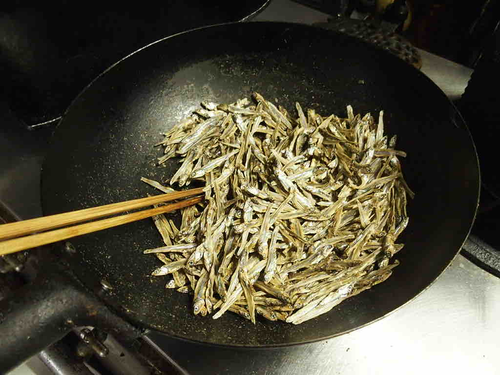 お正月の残りのごまめを炒って