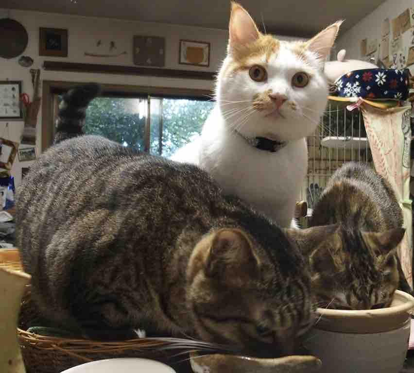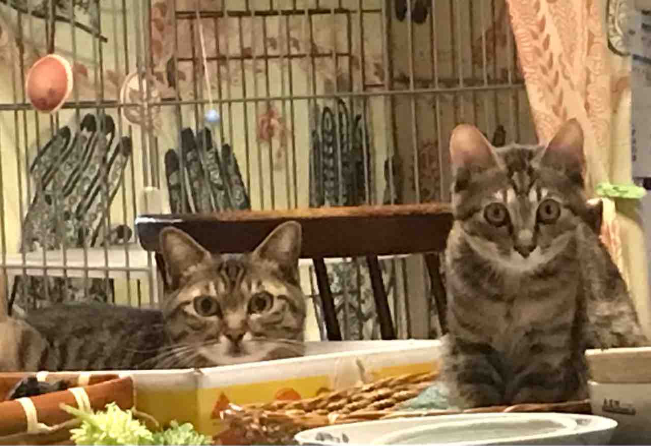 奥から、リイチ🐱+ギイ🐱+サラ🐱vごあいさつ〜🎶