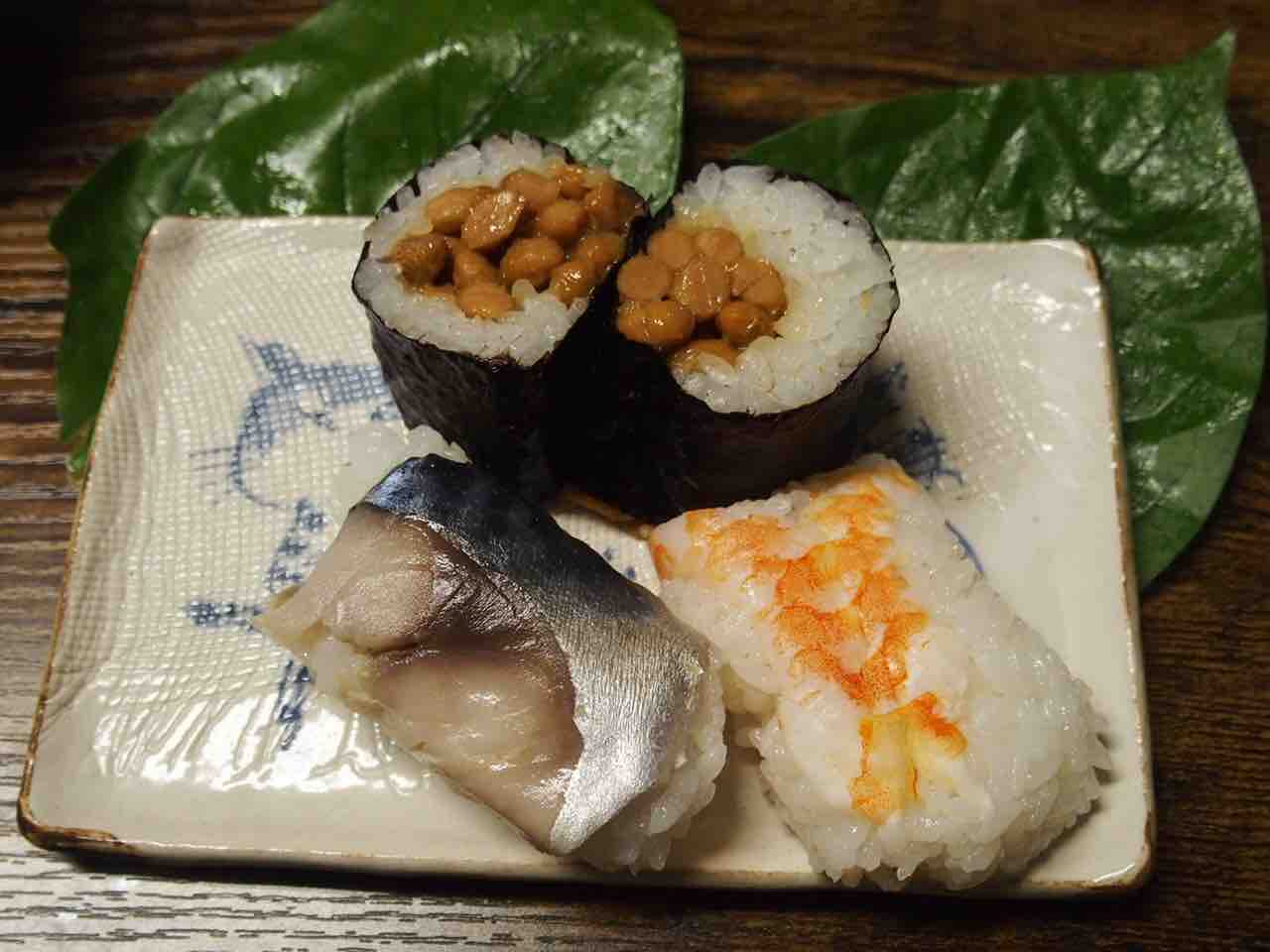 柿の葉寿司と納豆巻き