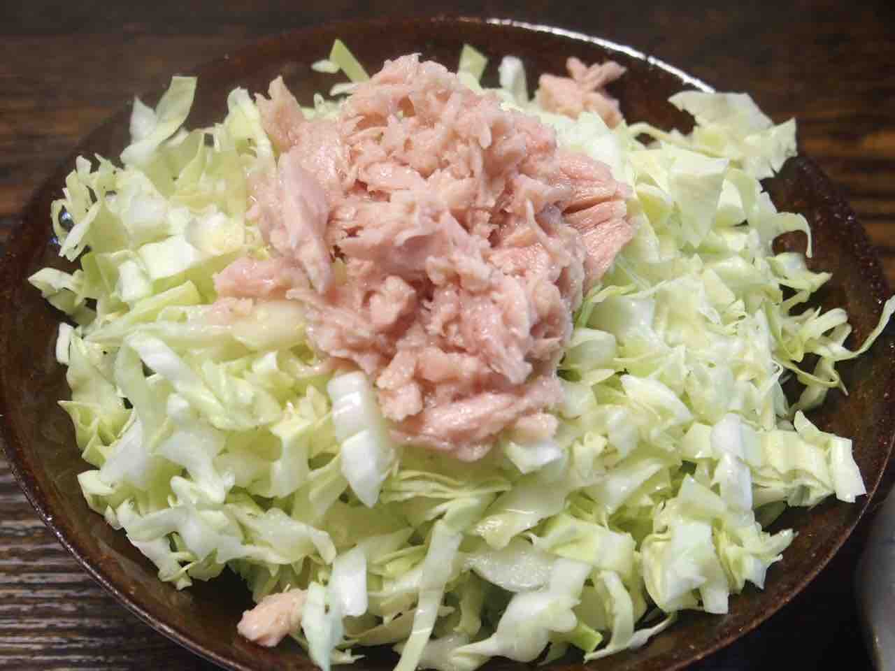 ごま油で炒め、醤油をひとたらし