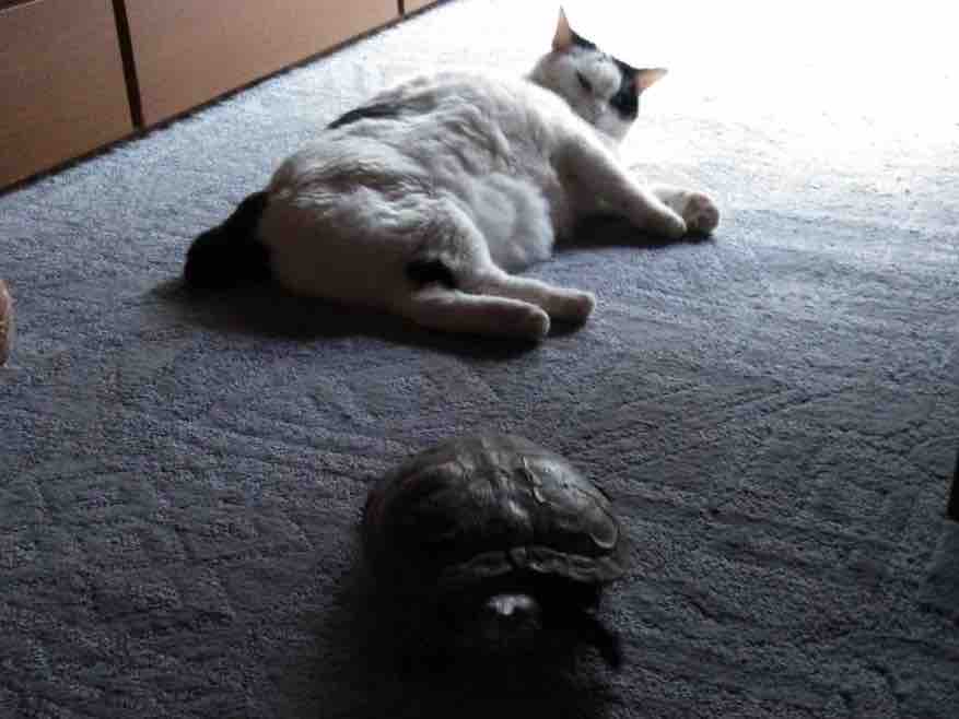 姉のお友だちの家の猫ちゃんと亀さんです。