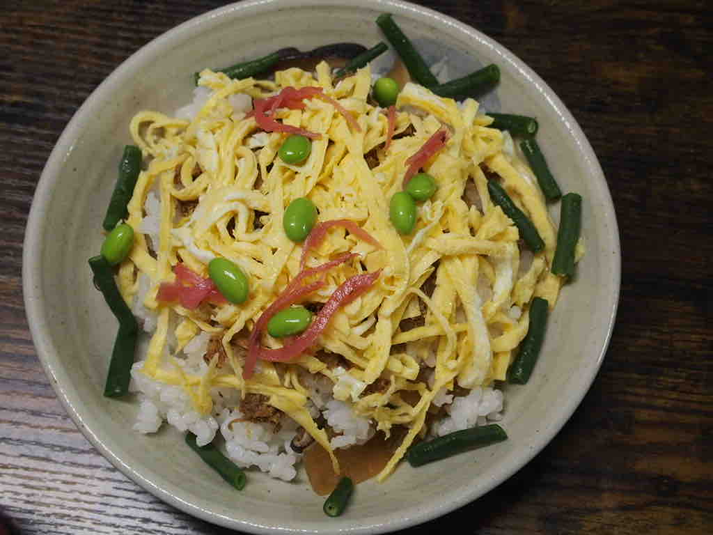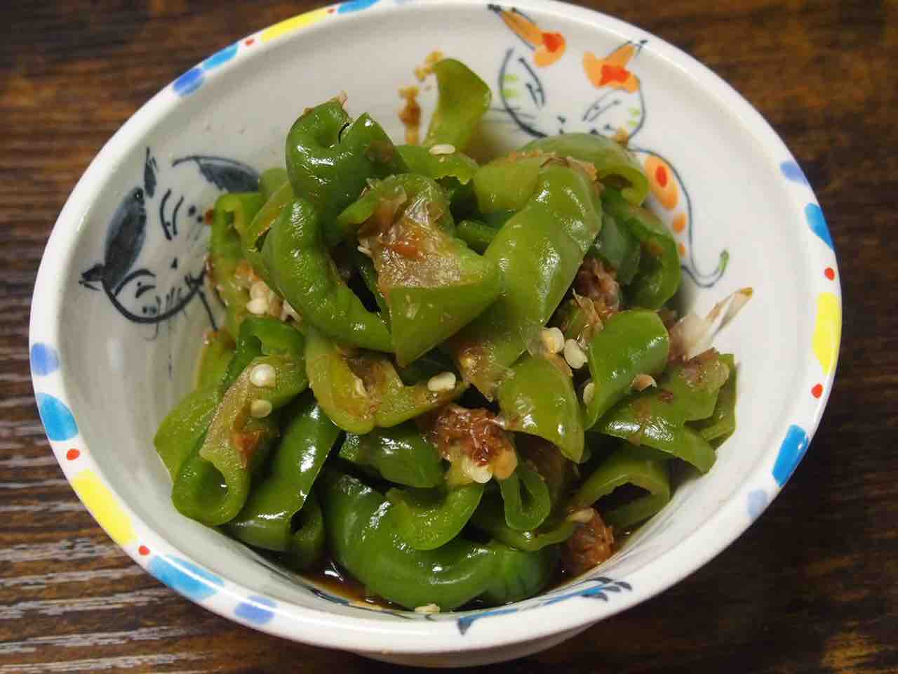ピーマンのみじん切りのせて