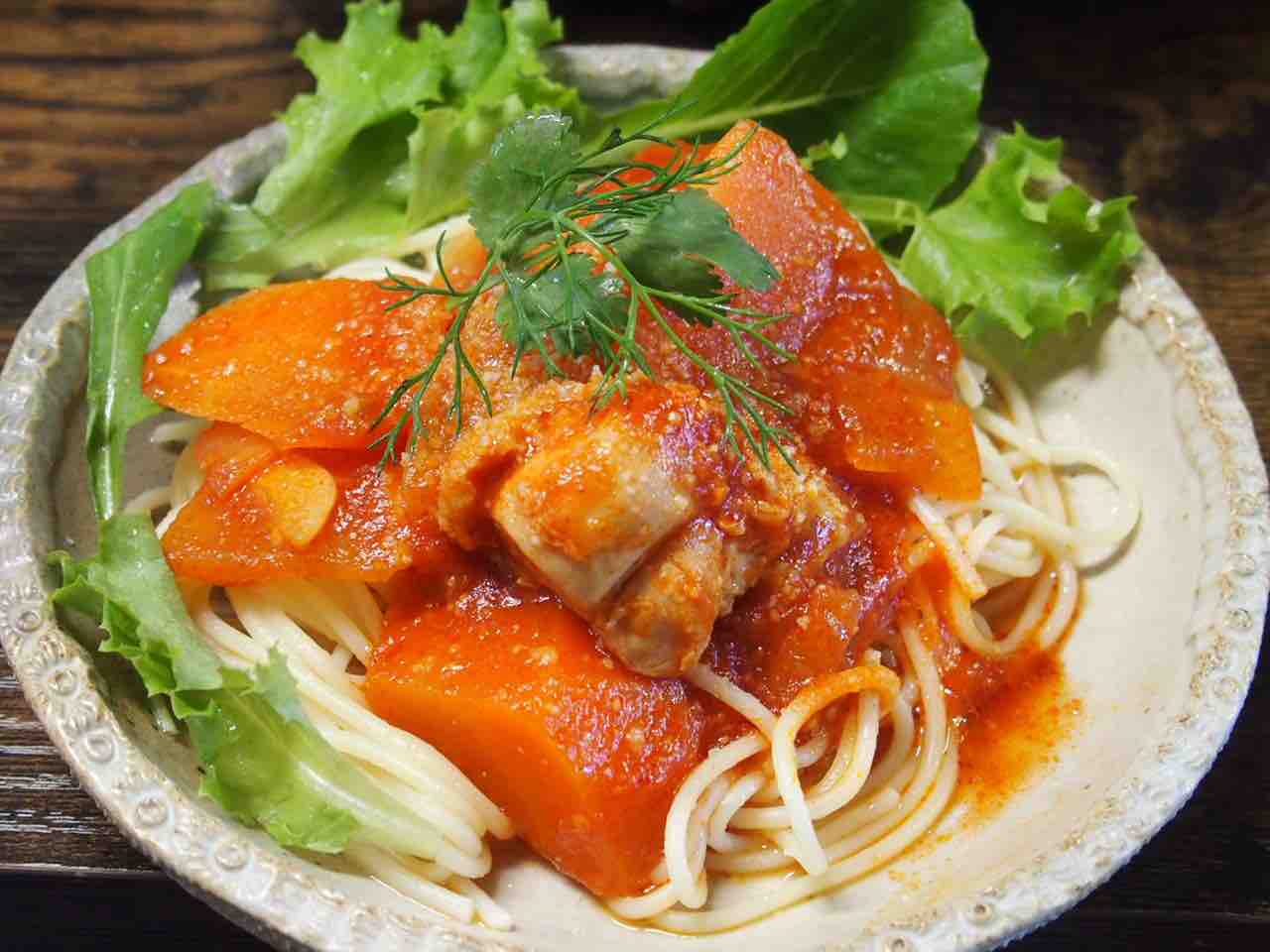 チキントマト煮パスタ