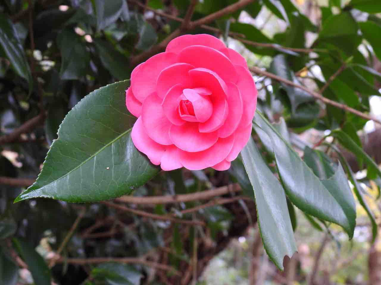 昨晩の雨も上がり (実生のツバキ)