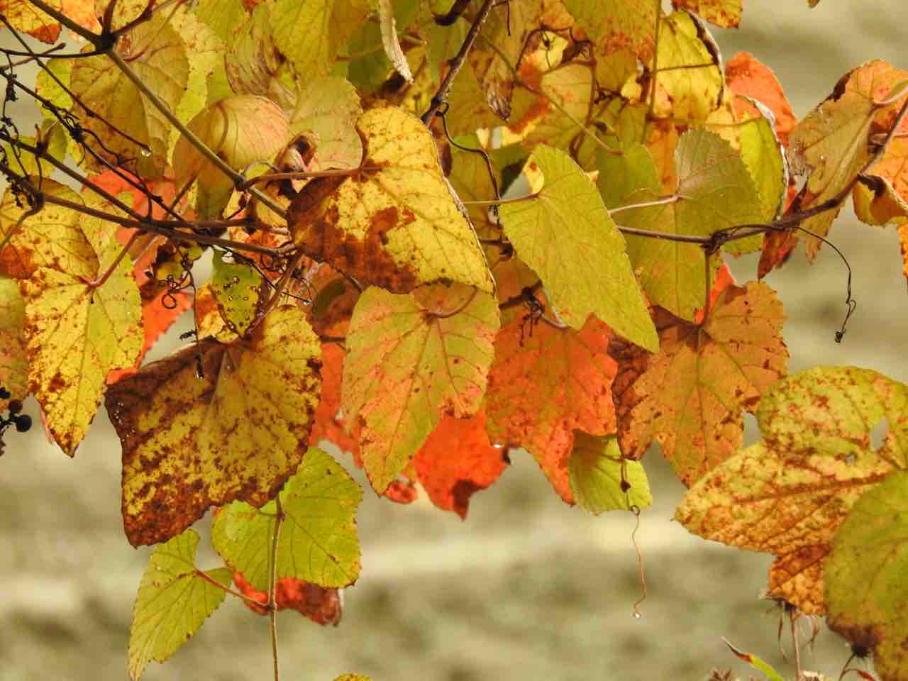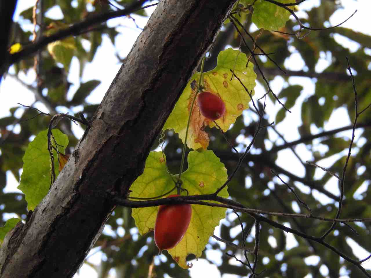 ぬもーっとした暖かさです (ヤマブドウの照り葉 実生です)