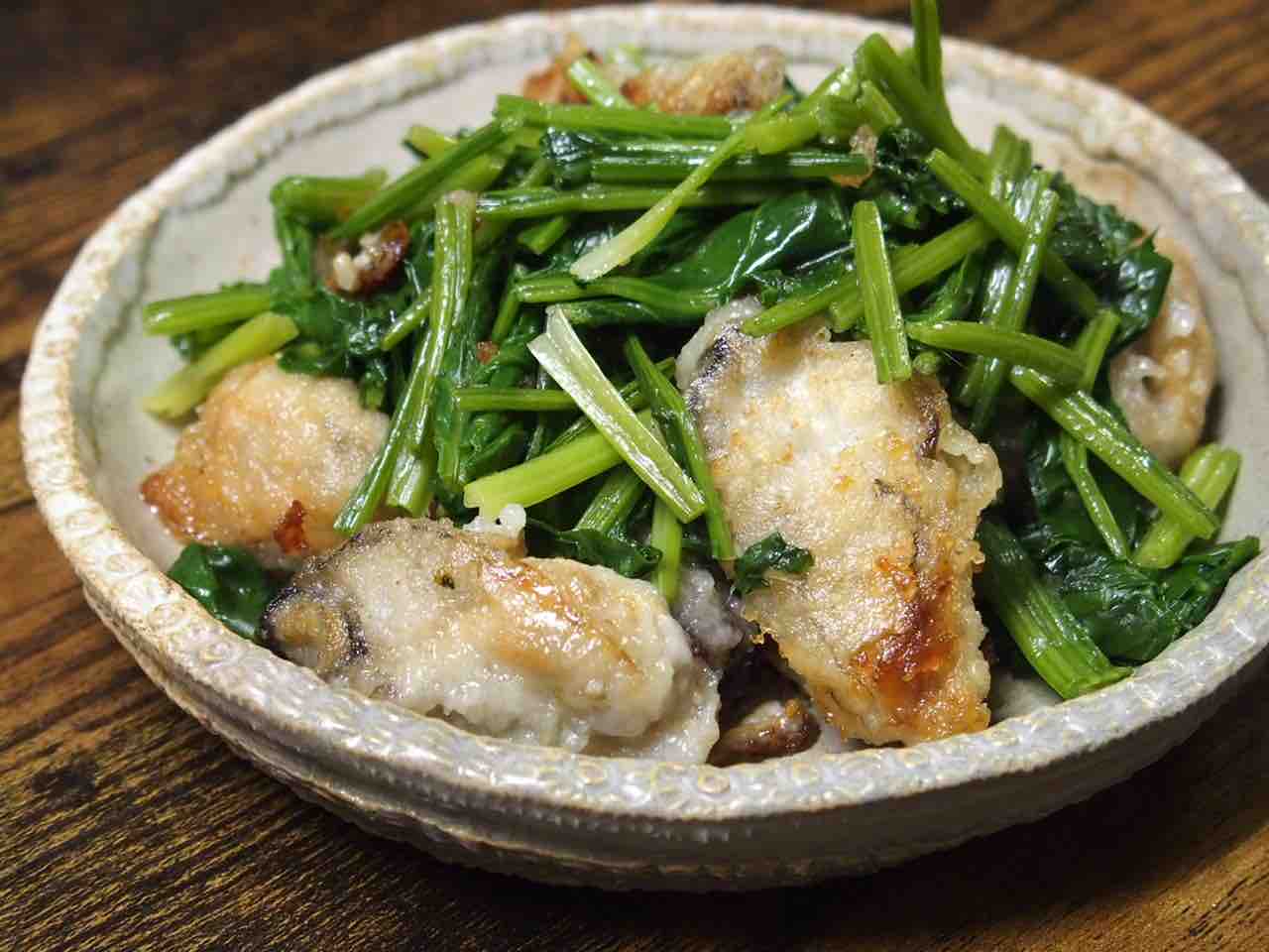 牡蠣とほうれん草ソテー