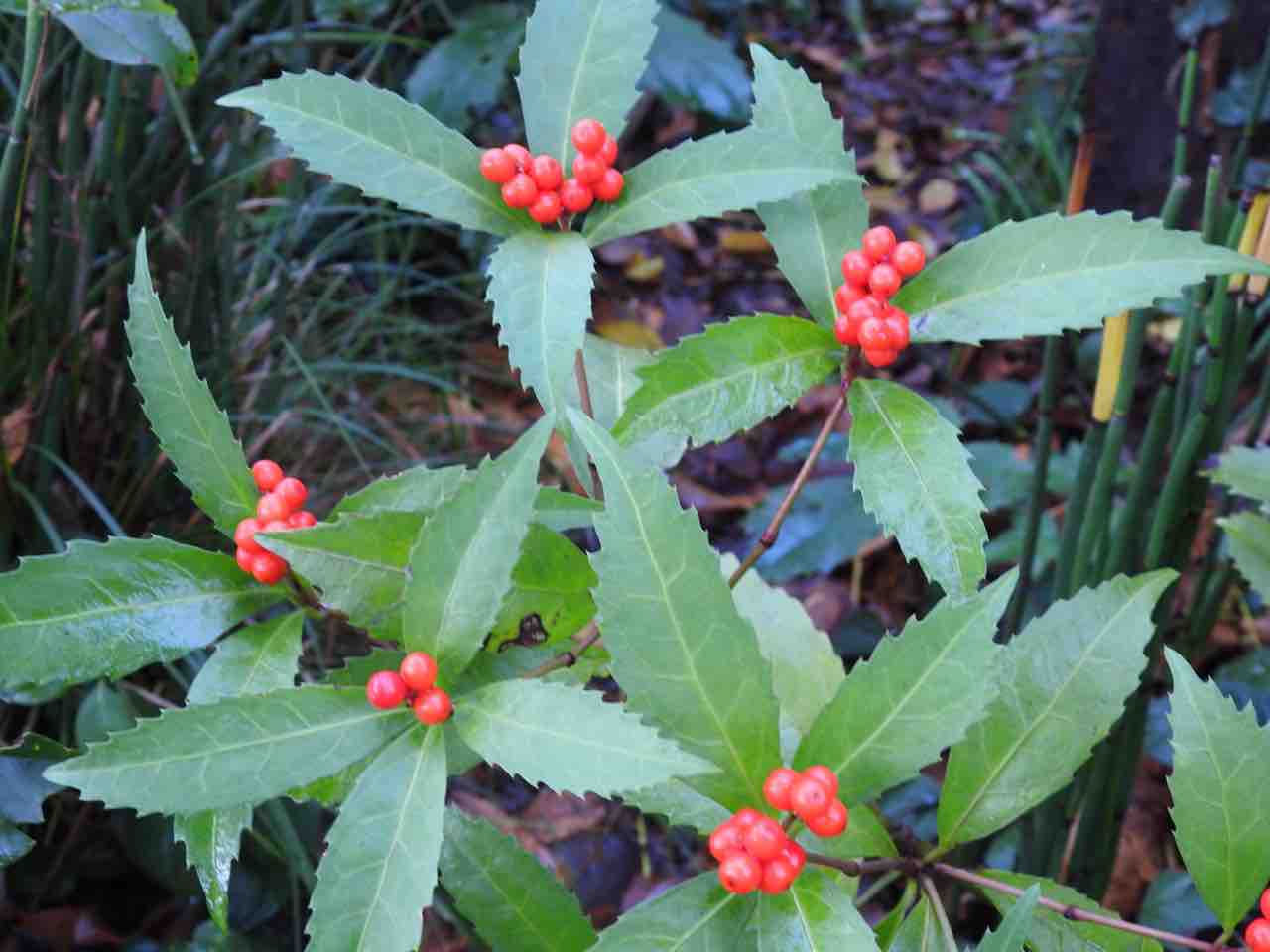 今朝は、初冬とは思えない (実生のセンリョウウ)
