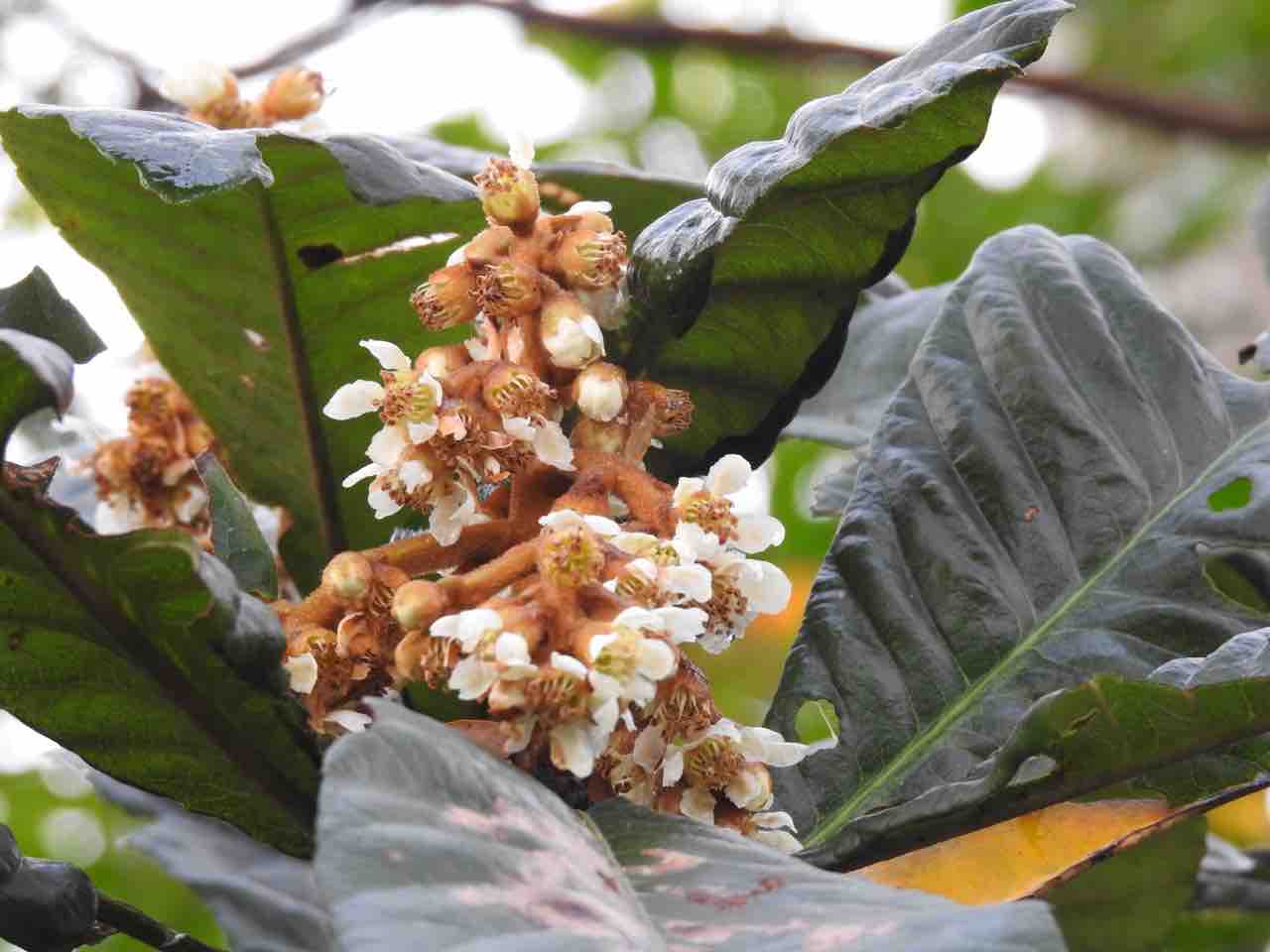 びわの花 (これも実生) どこかでカエルの合唱も聞こえます♪
