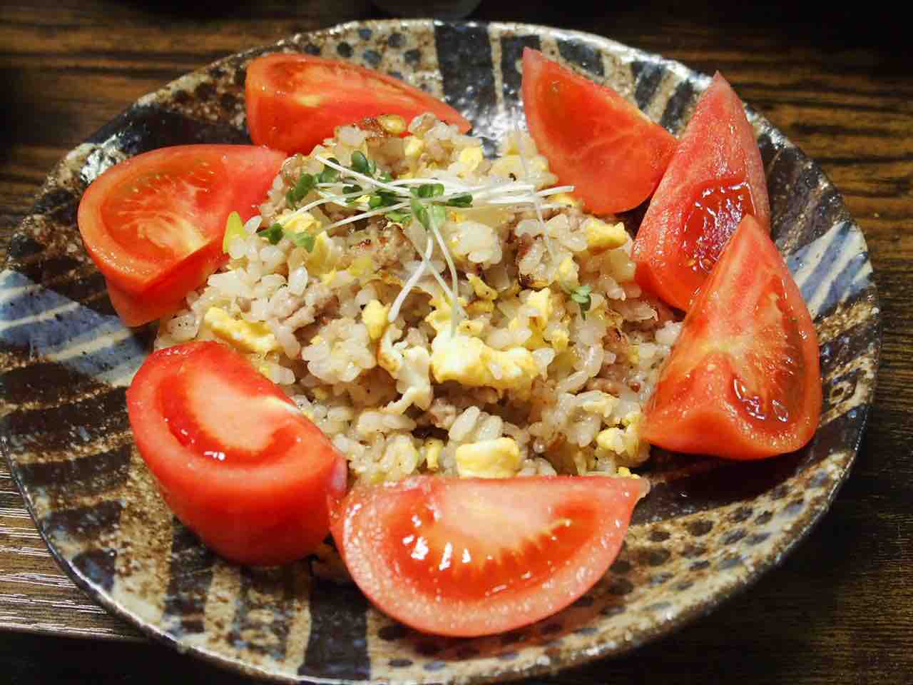 いただいたトマトをトッピング ネギチャーハン