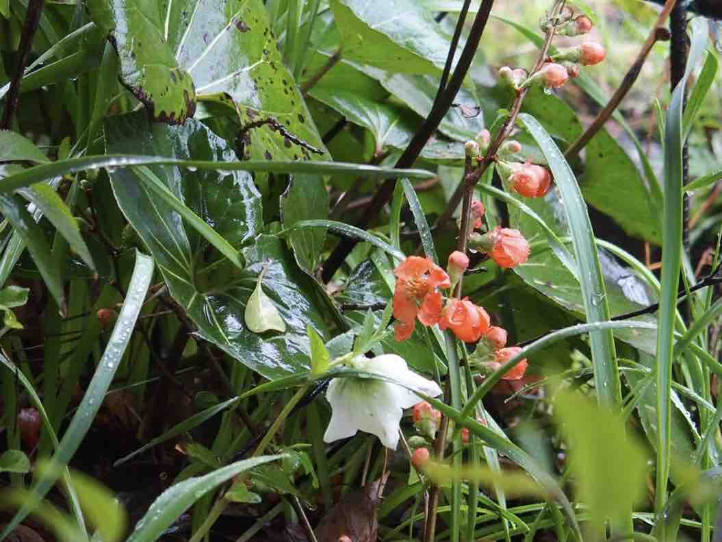 クサボケ と クリスマスローズ