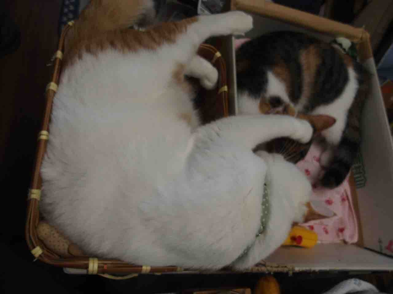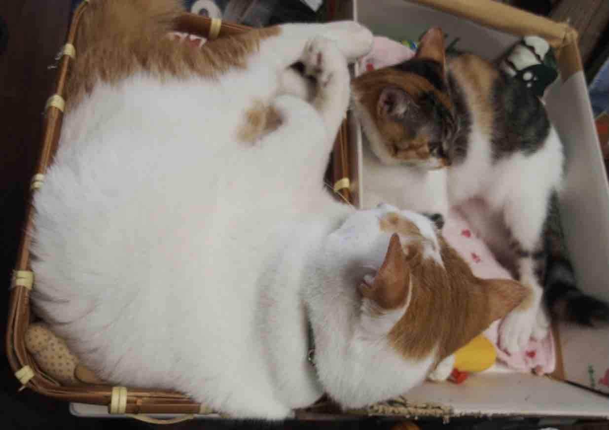 サラに甘えているシマ&ミケ