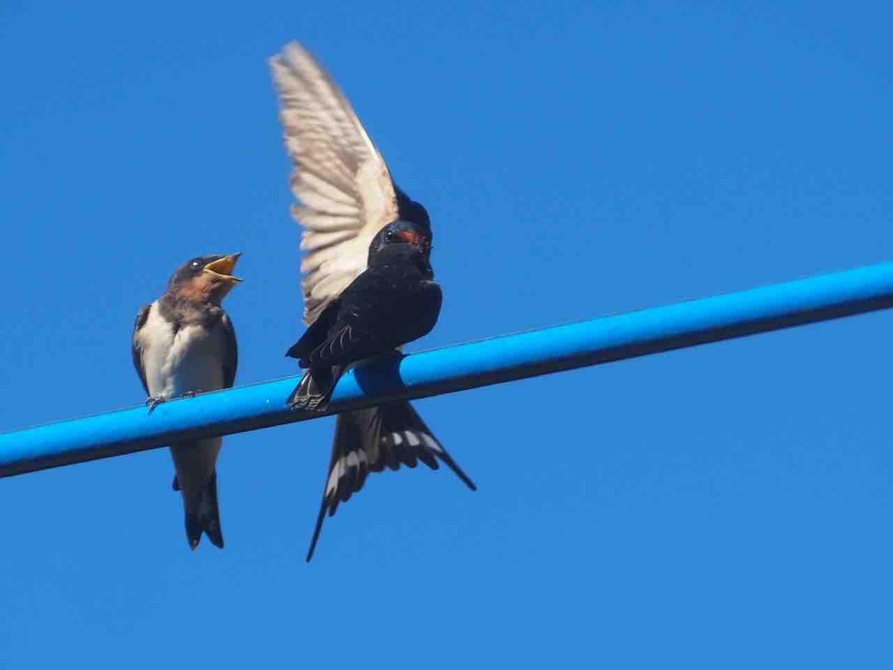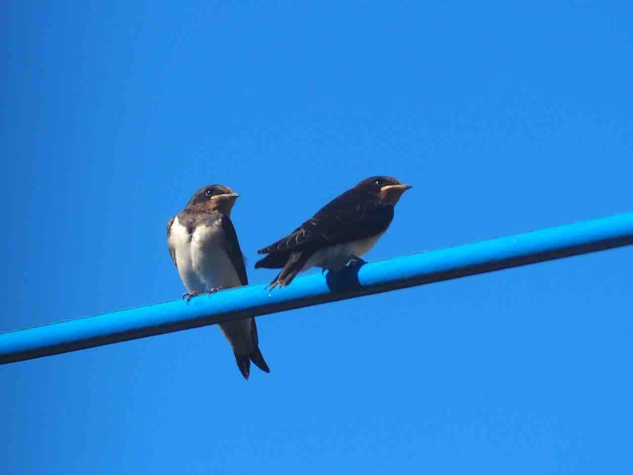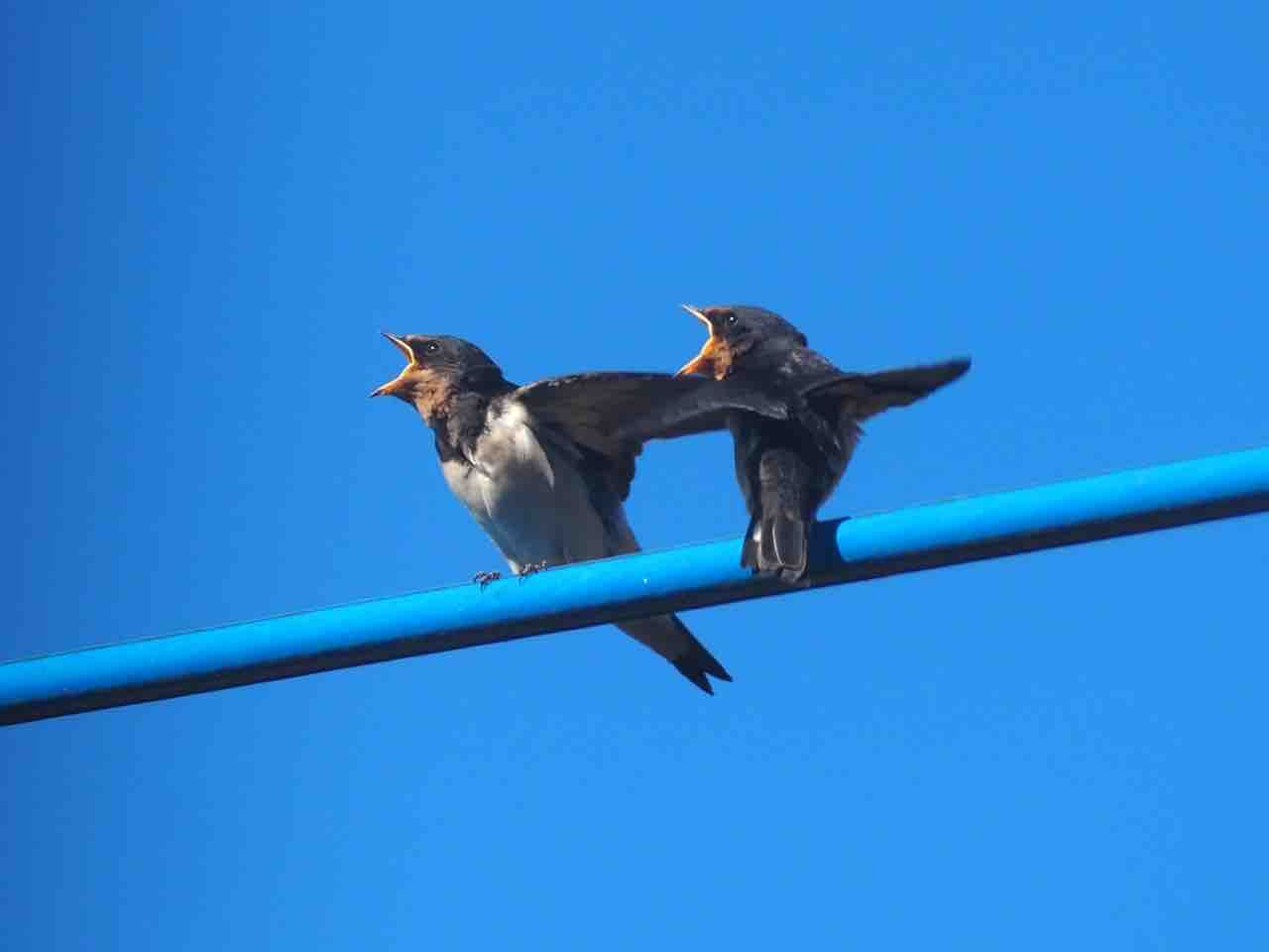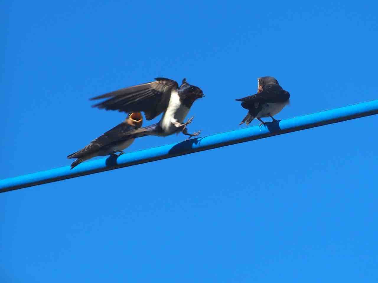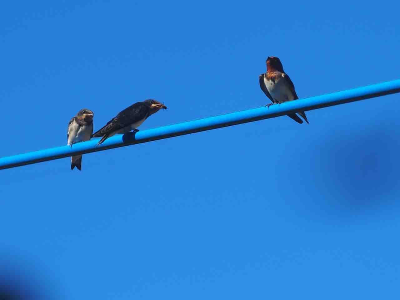 外の電線に、ツバメさんです。
