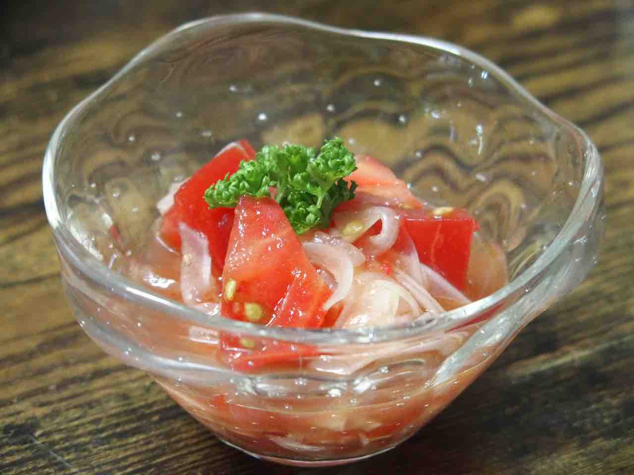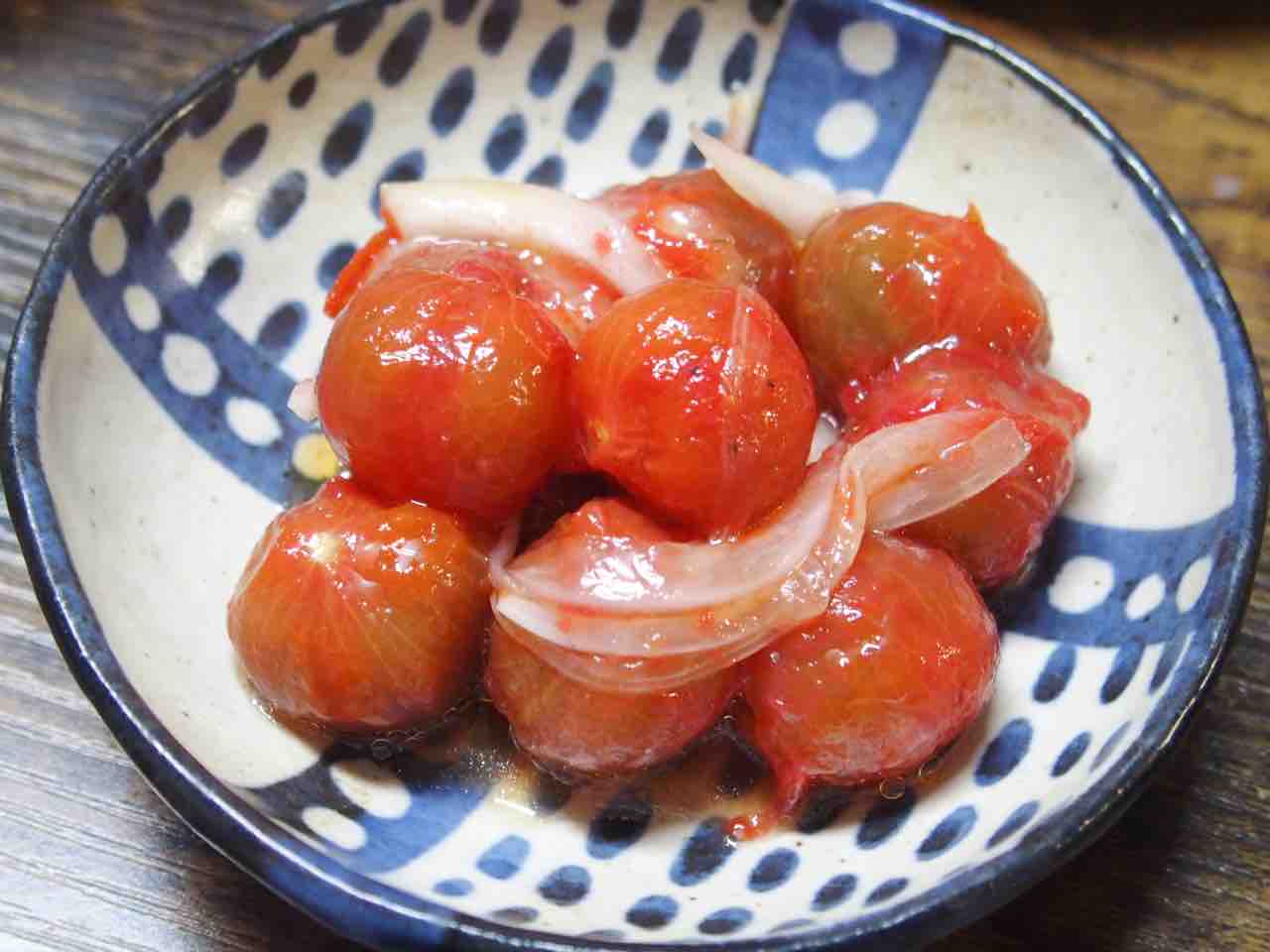 いただいたプチトマトと新玉ねぎのサラダ