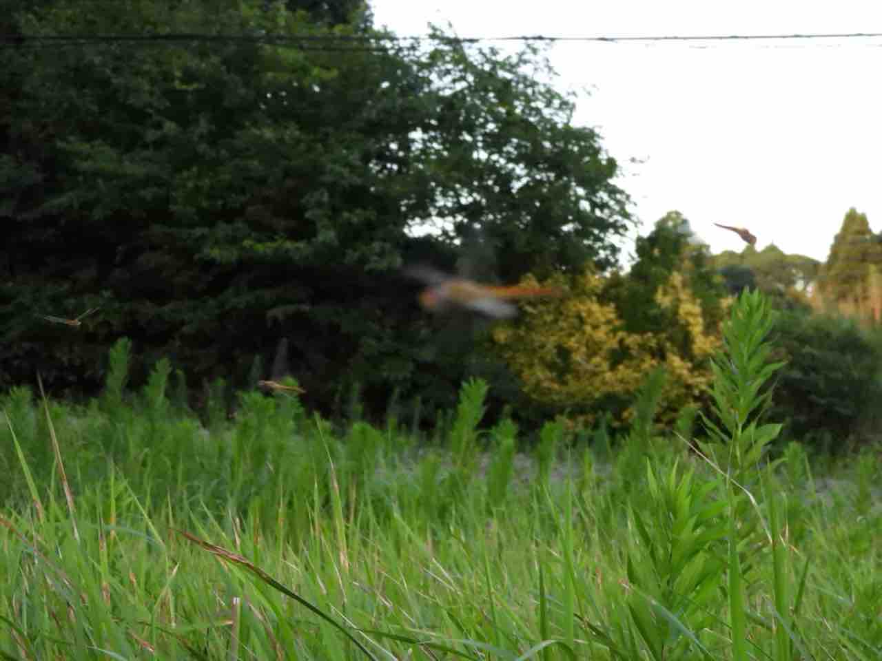 ウスバキトンボが我が家の南側の草叢の上を群舞