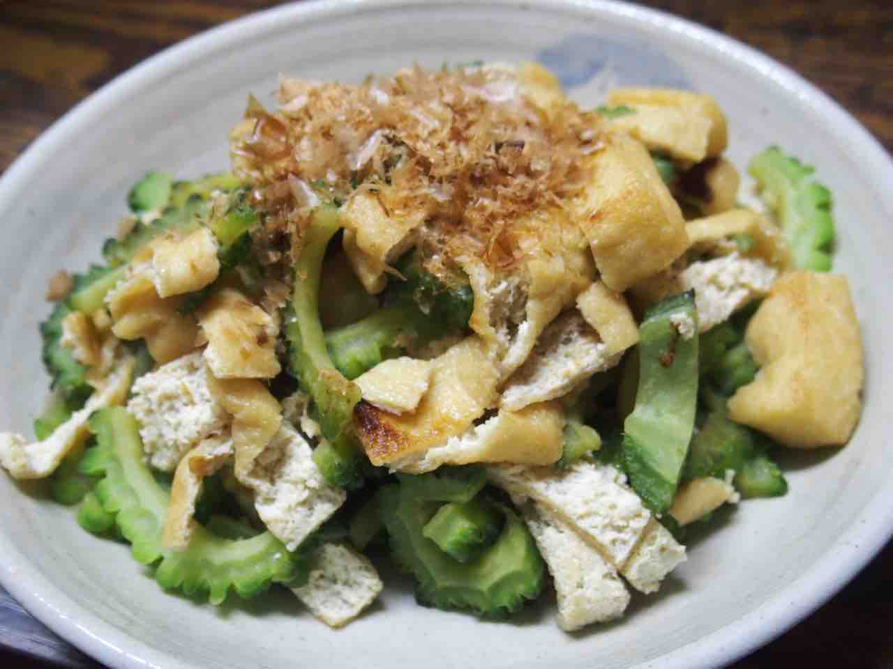 いただいたゴーヤをお揚げと炒めて〜☆