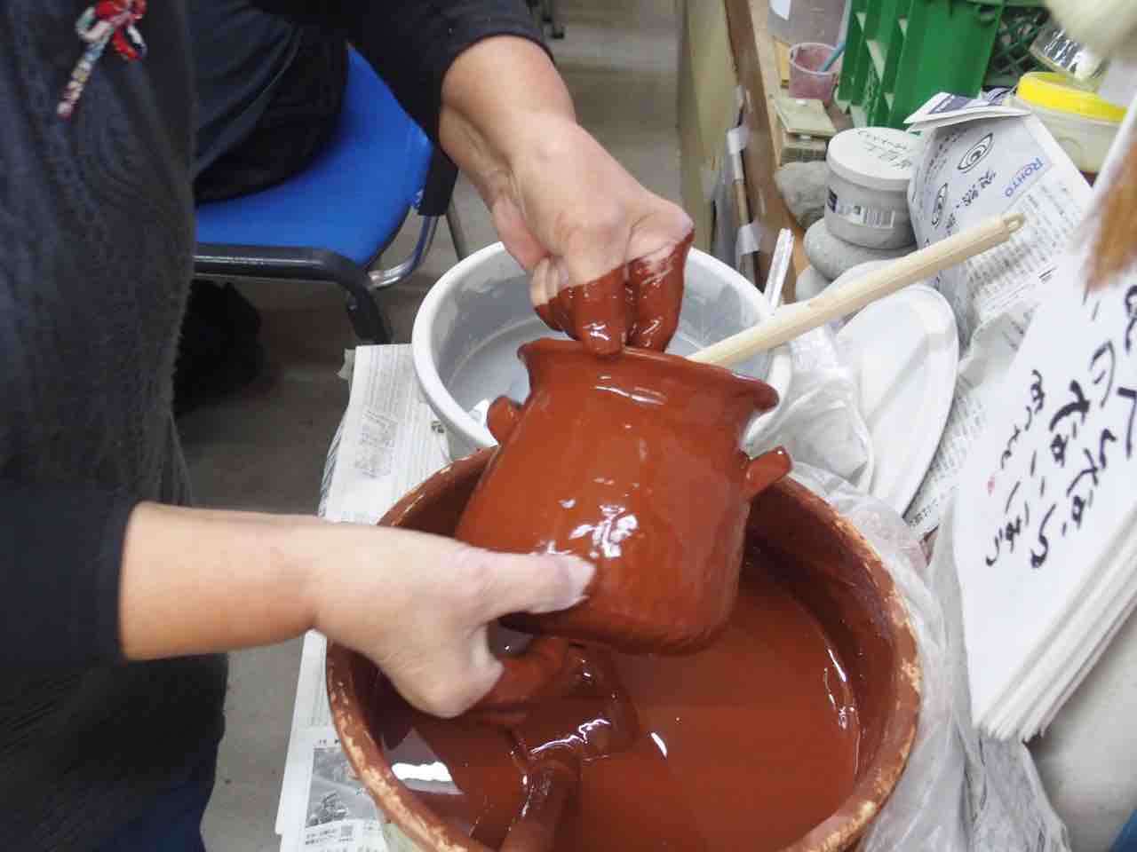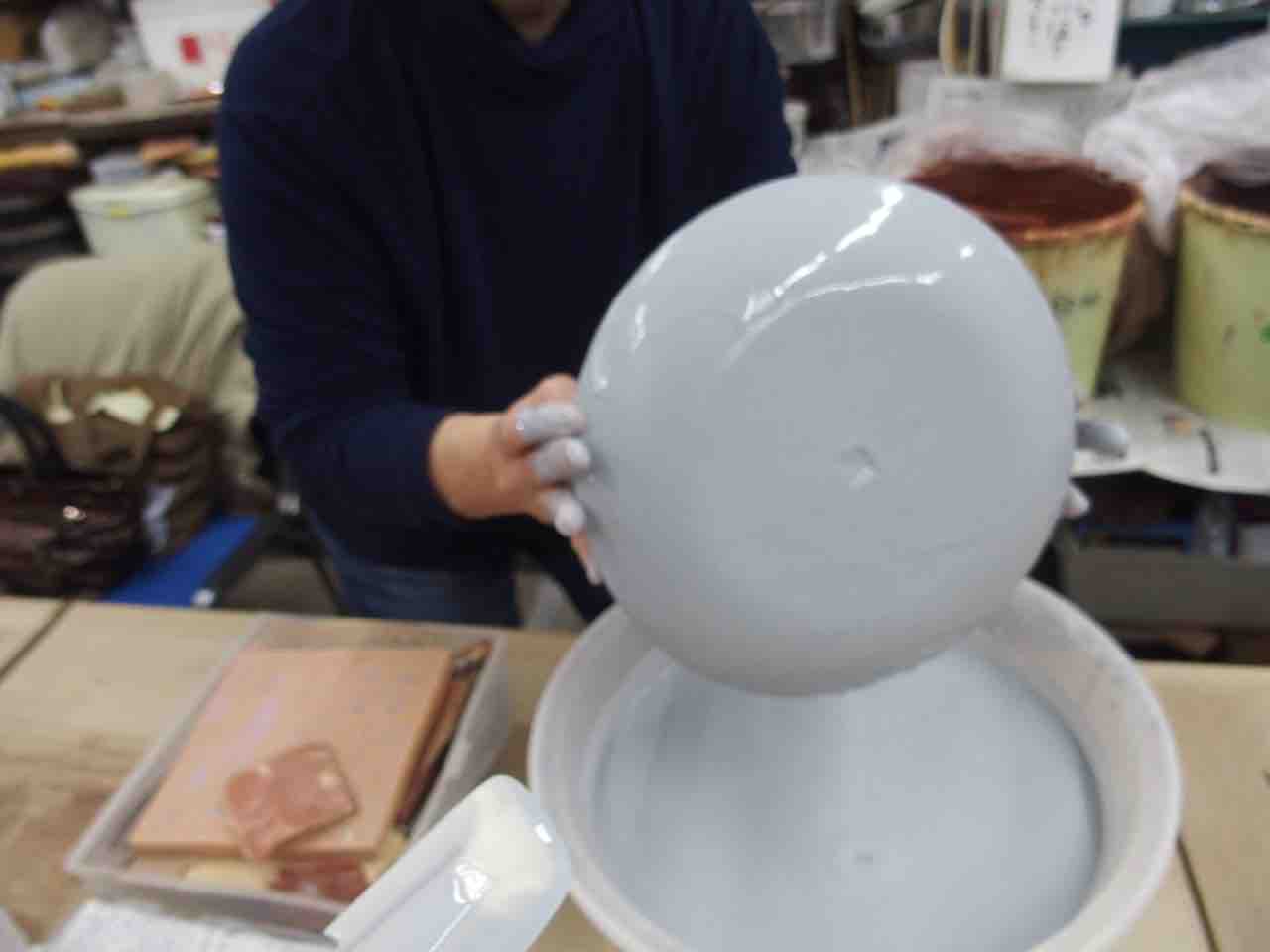 いよいよ釉薬かけです。