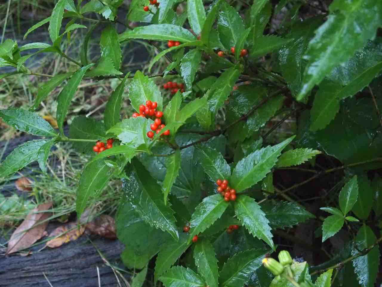 実生のセンリョウ お正月飾り花からのこぼれタノです〜