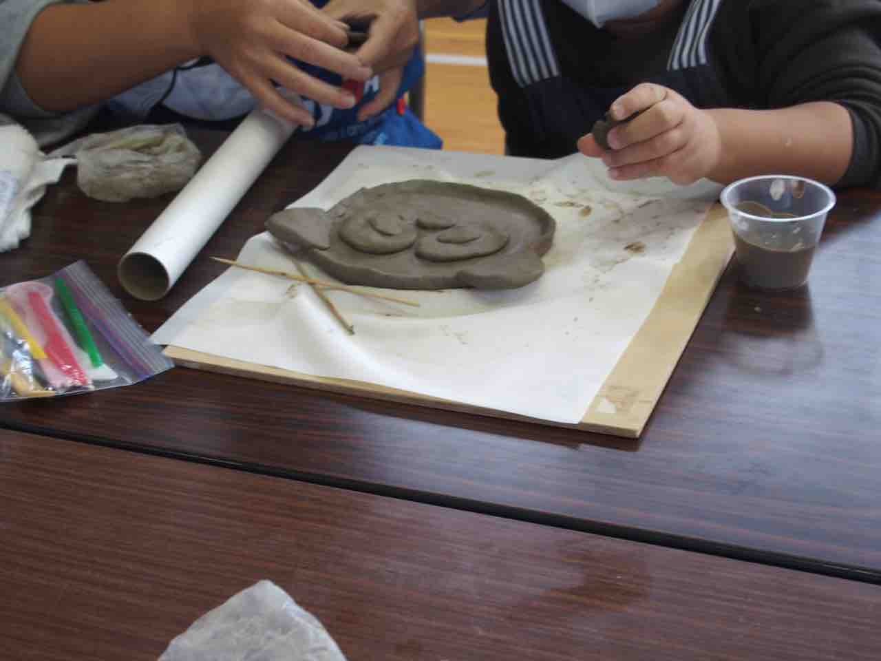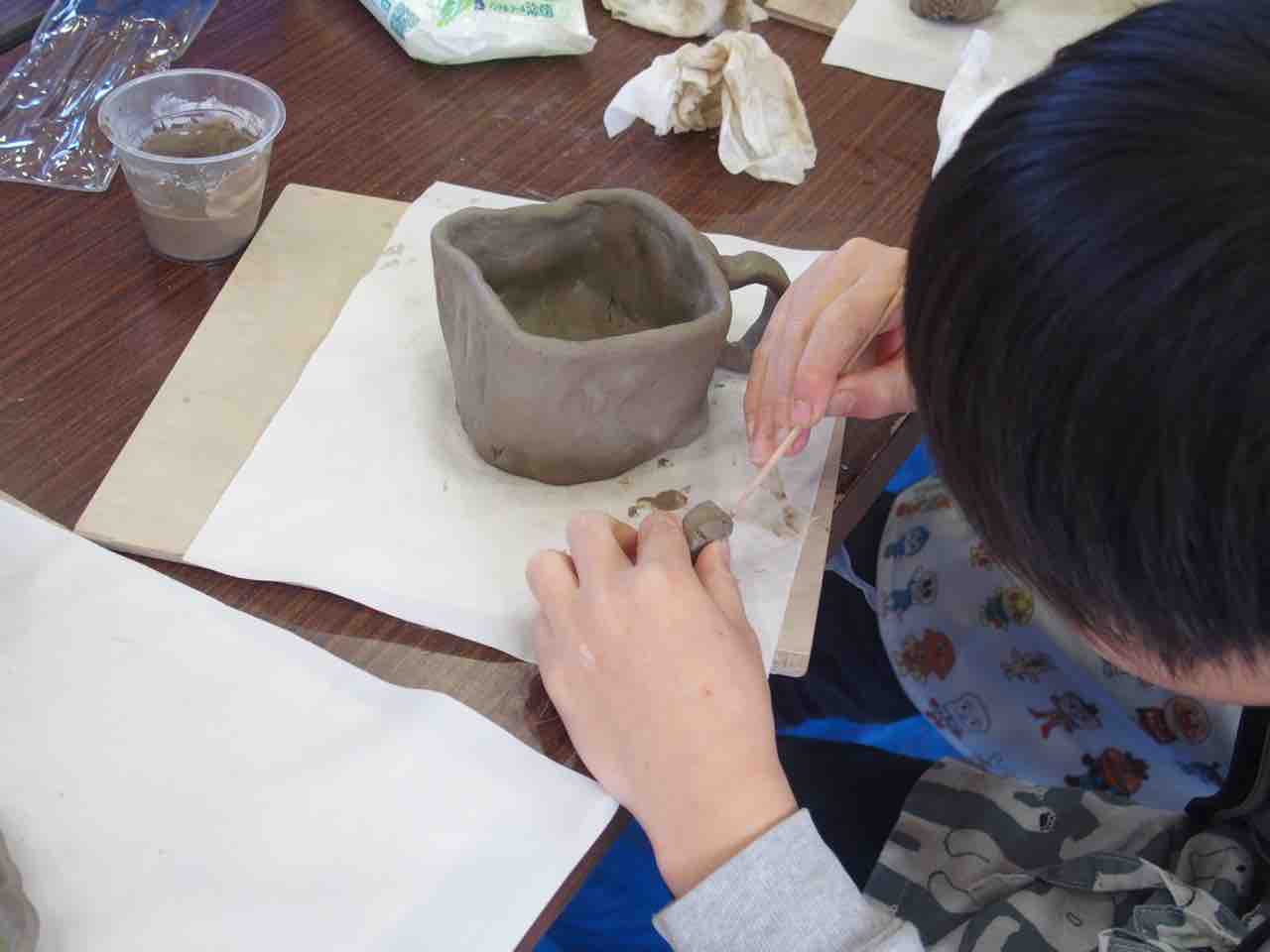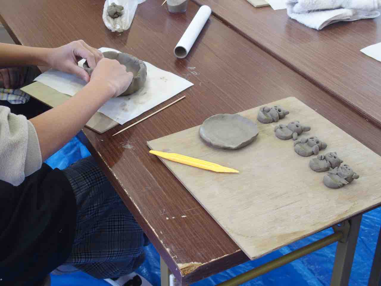 陶芸教室、体育館は熱気に溢れているようです。作品が個性的で楽しいですね♪