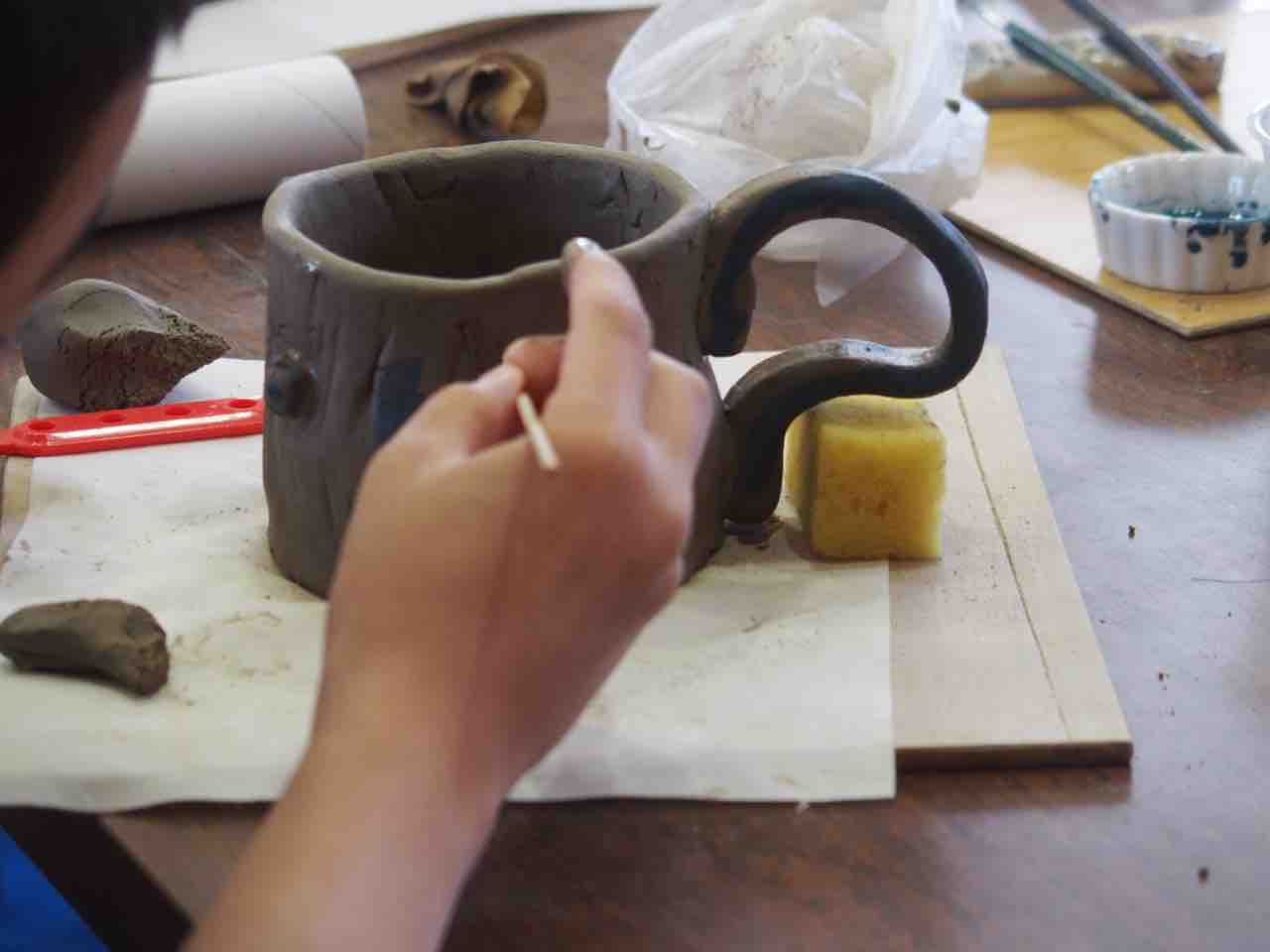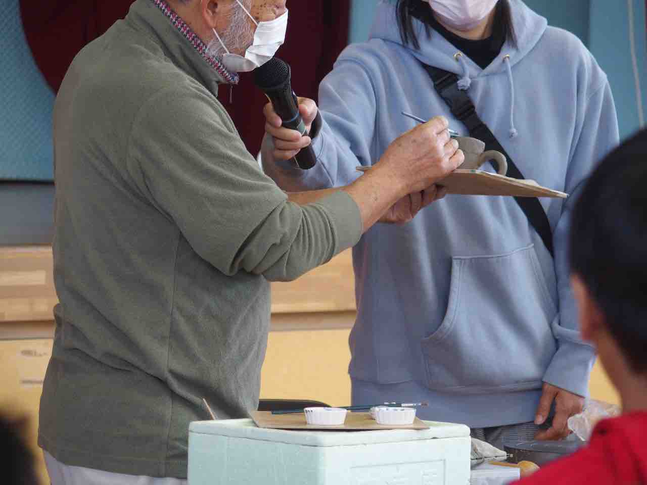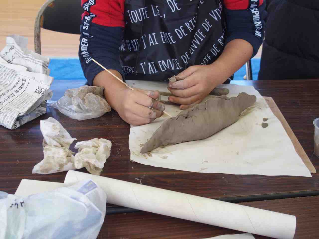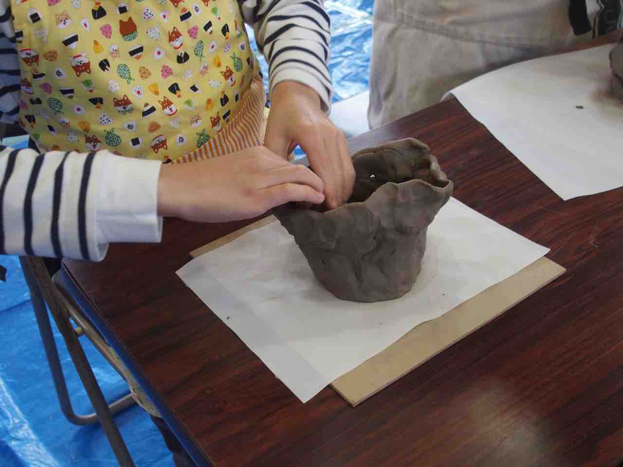 陶芸教室、体育館は熱気に溢れているようです。作品が個性的で楽しいですね♪