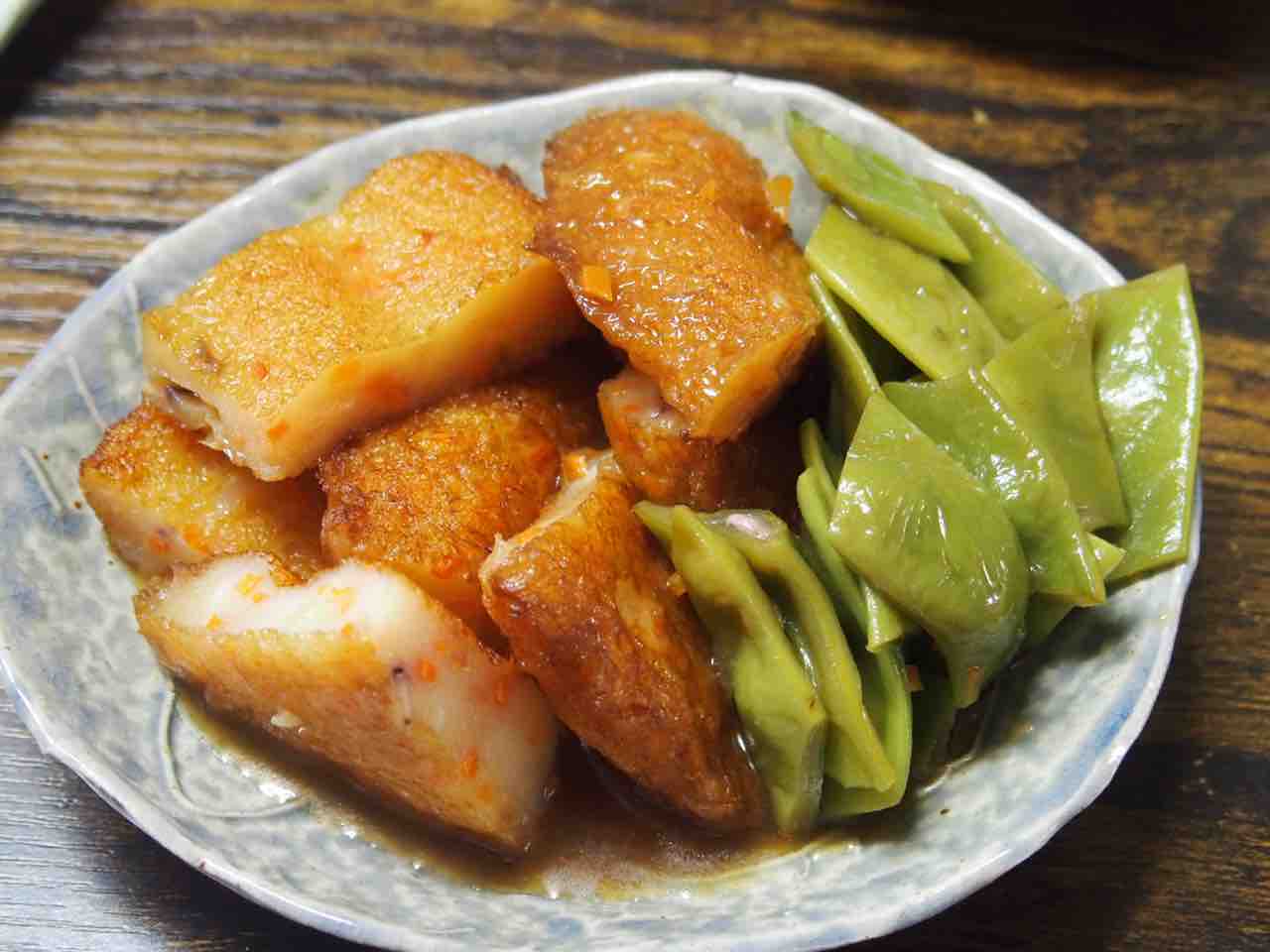 さつま揚げとモロッコインゲンの煮物