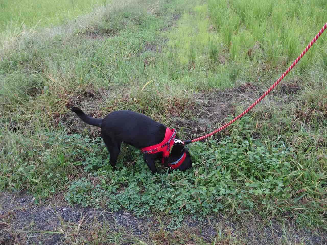 赤のリードが似合っています。