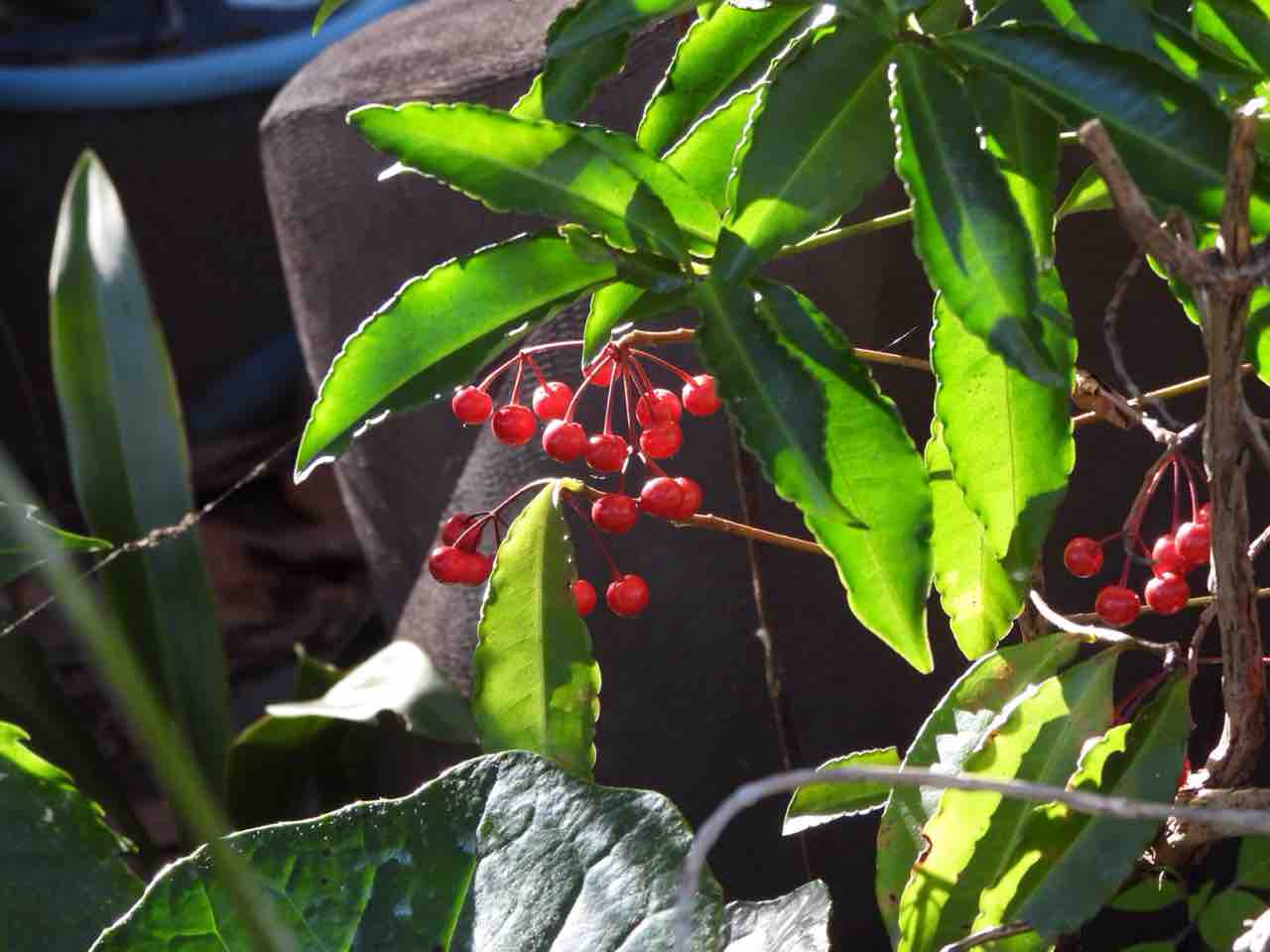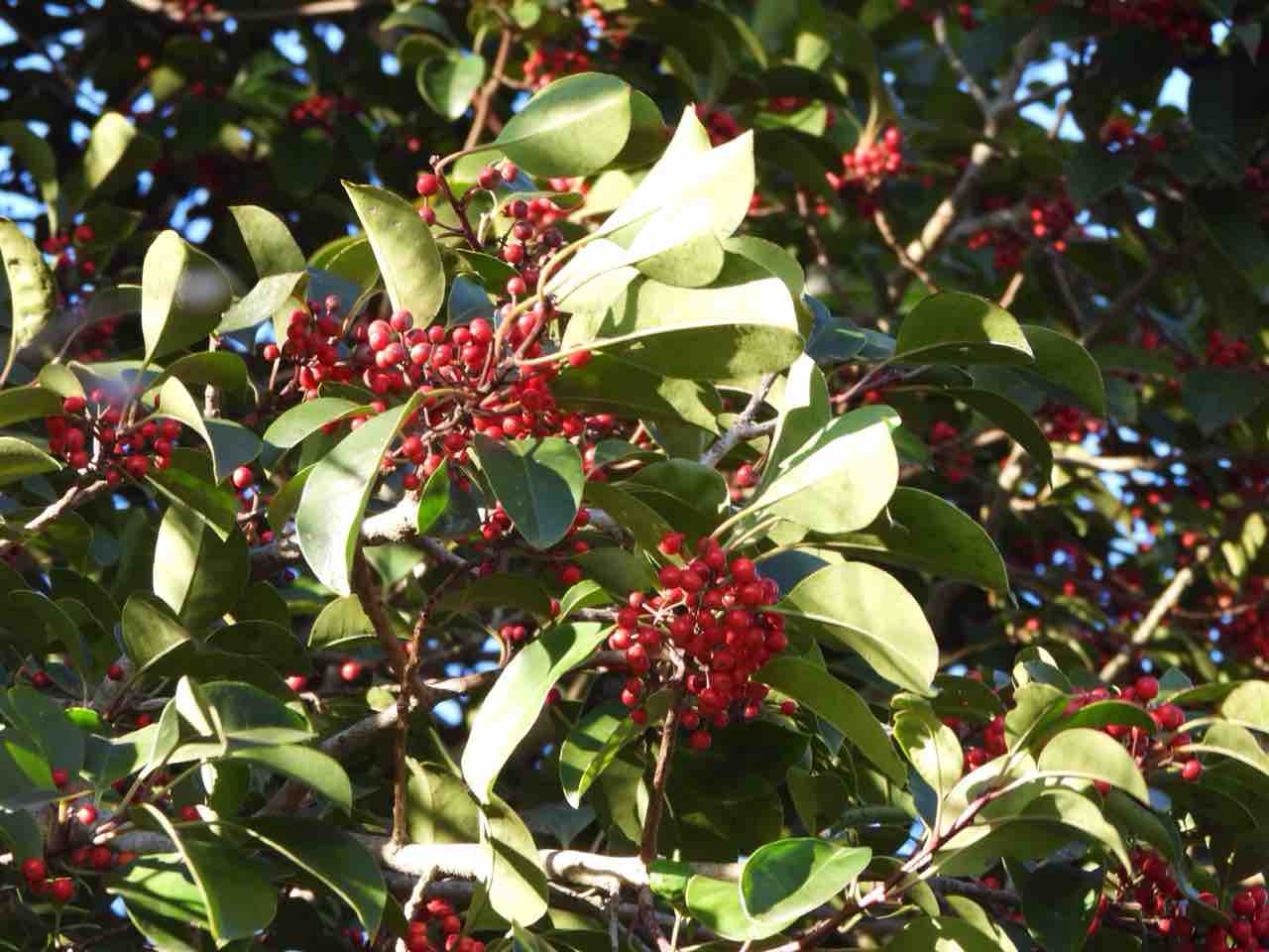 お庭の赤い実は無事ですね。公園のクロガネモチは近づくとヒヨドリがたくさん逃げていきます^^;