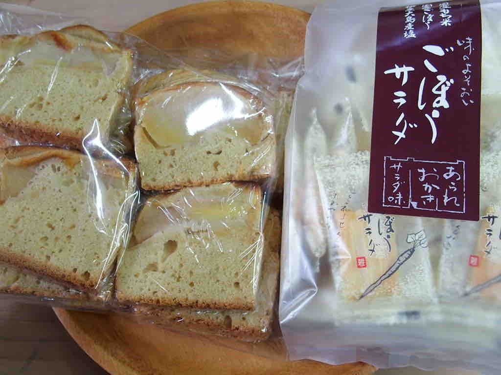 ごぼうせんべいと手作りリンゴケーキ、美味しい(^-^)v