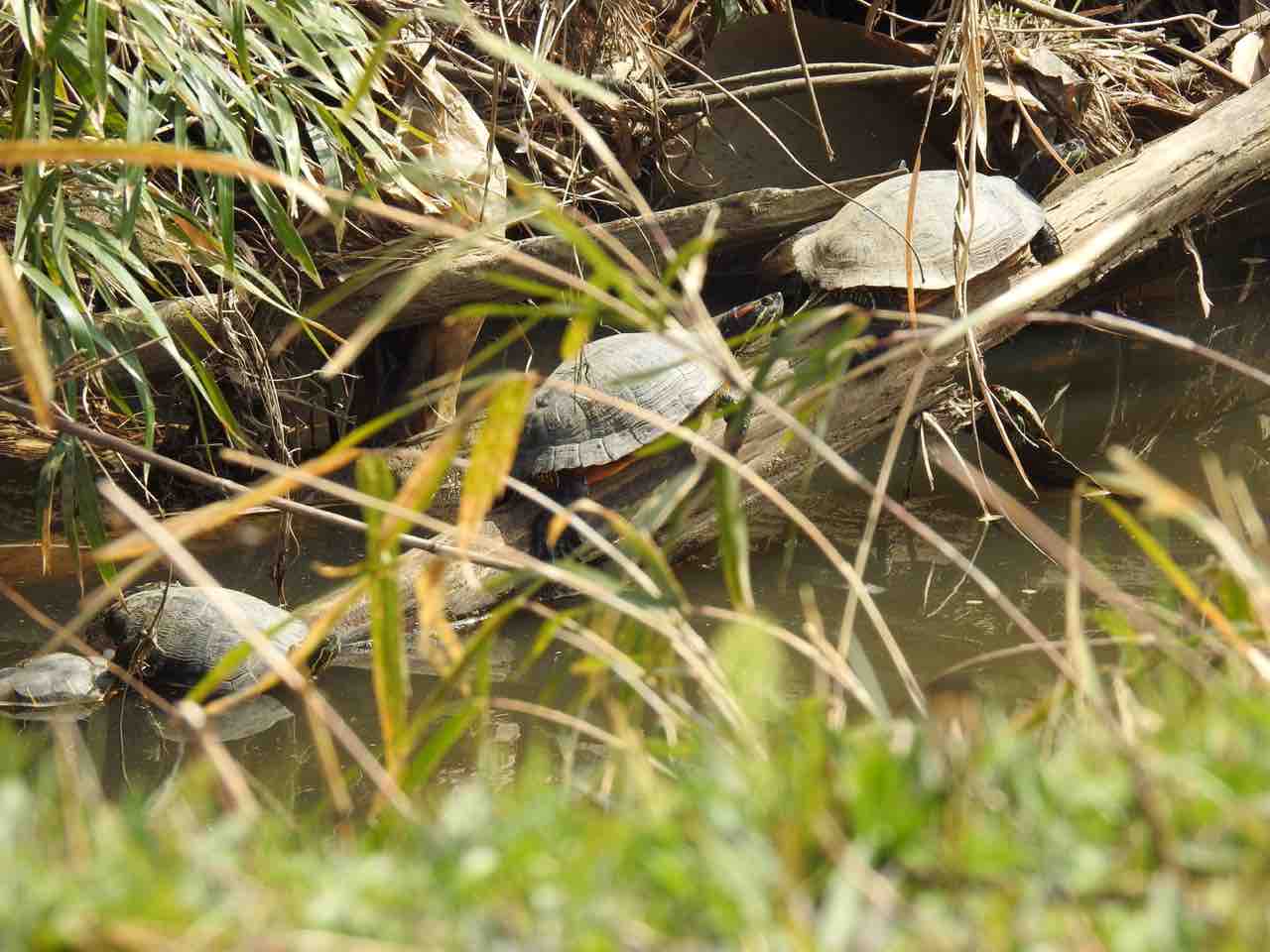 近くの川に行くと、カメがゾロゾロ