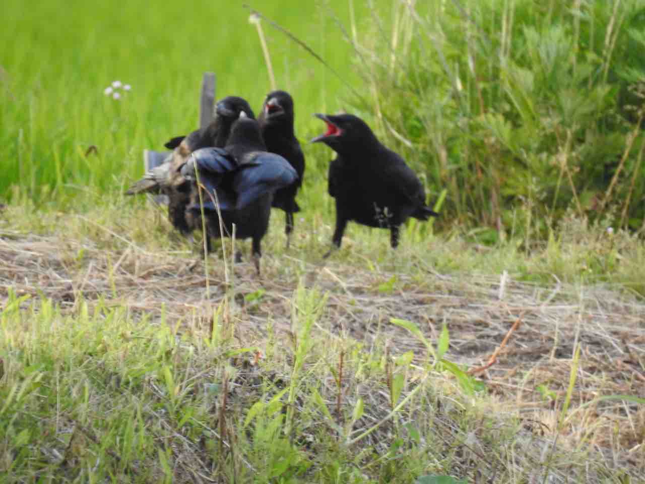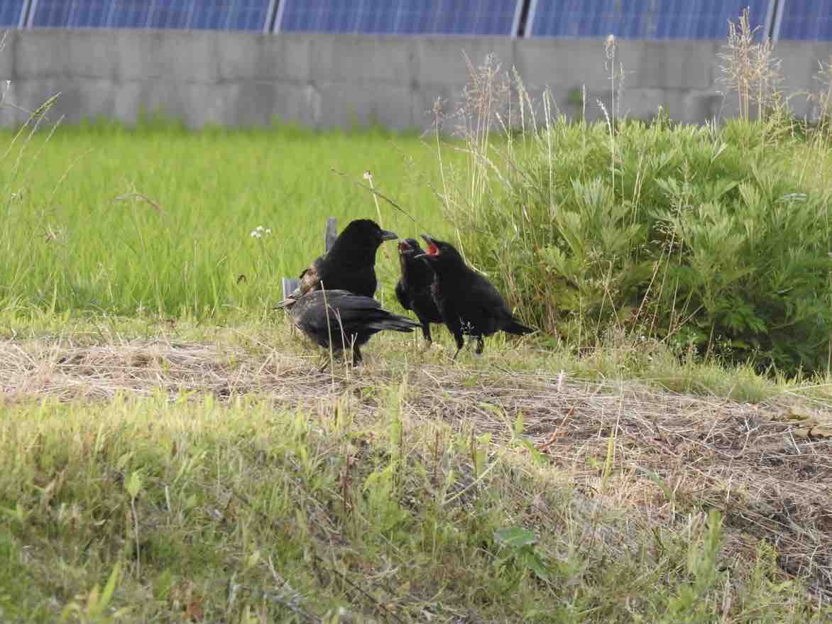 カラスさんたち、おねだりしてますね。